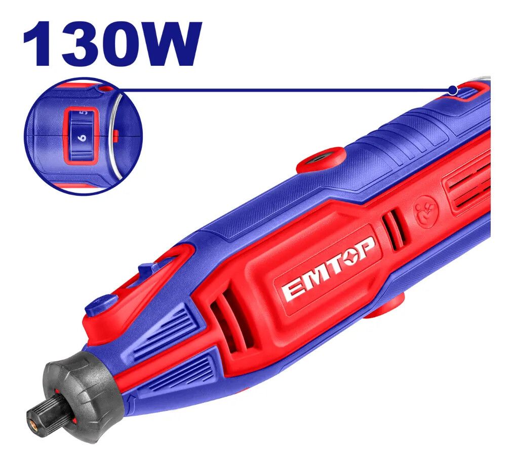 Mini Torno 130W con Velocidad Variable + Accesorios – Emtop EMTEMGK1301-4